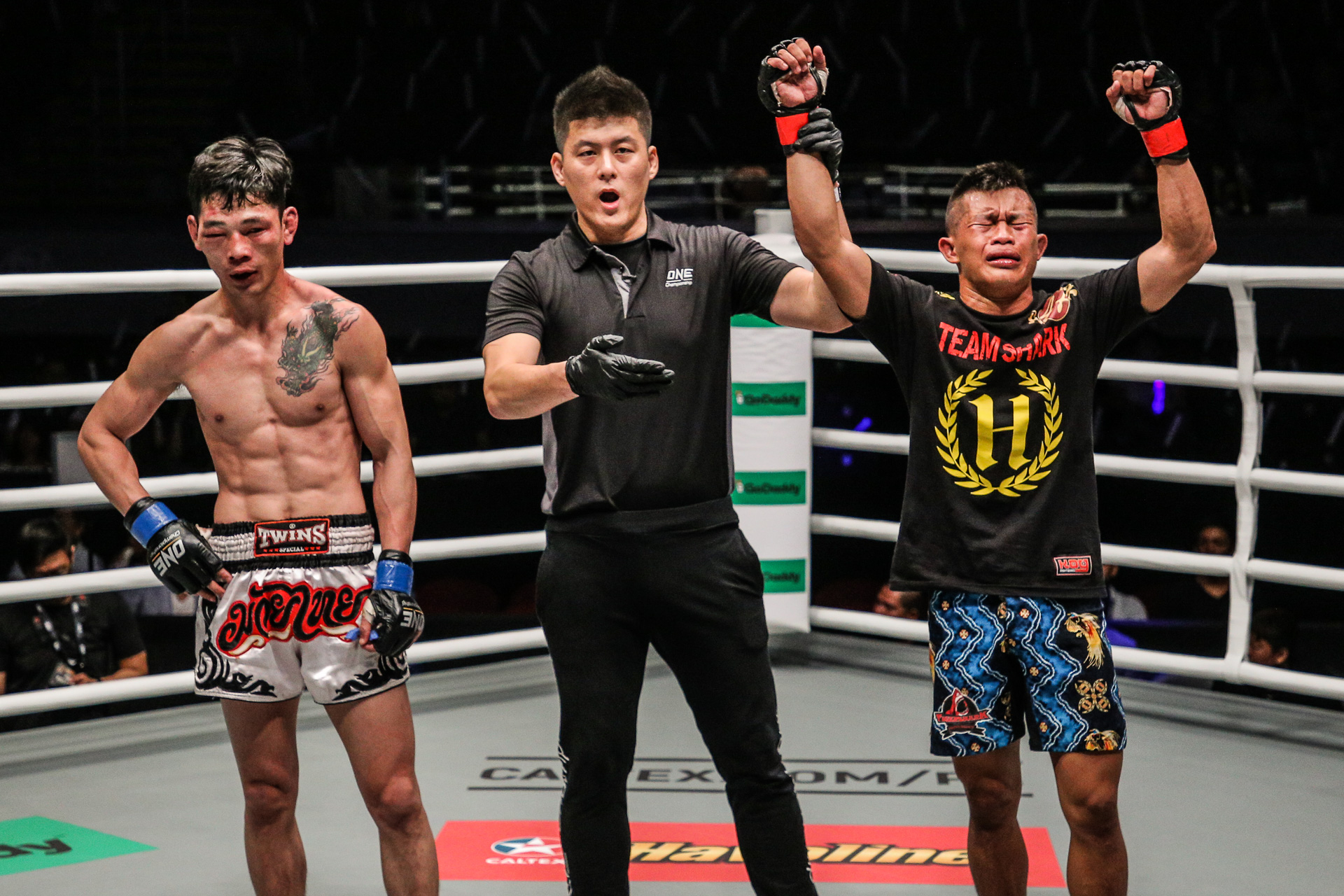 “ONE: Heroes of Honor” kicked off with the bout between Adrian Mattheis, 24, of Jakarta, Indonesia and Lan Ming Qiang of China. They competed in the strawweight division whose current champion is Alex “Little Rock” Silva of Brazil.