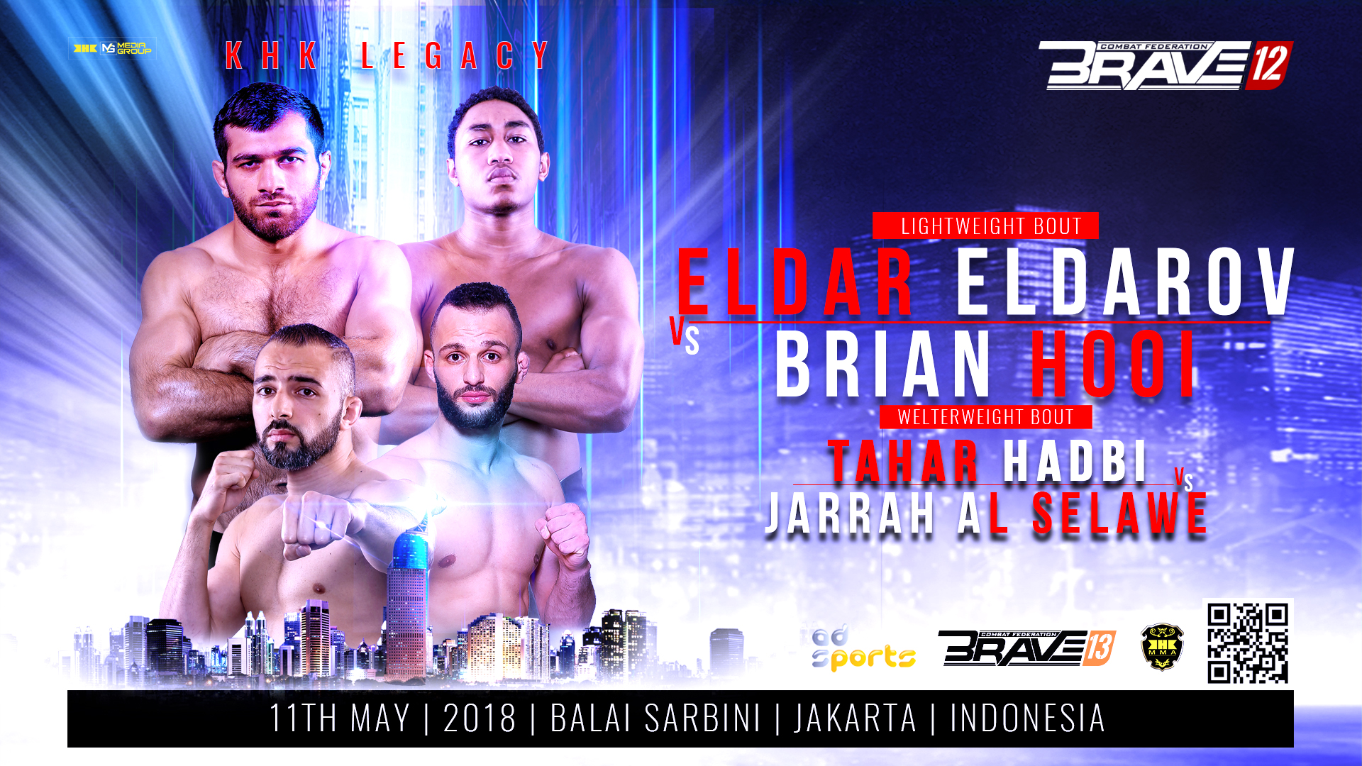 Brave Combat Federation has announced the fight card for “Brave 12: KHK Legacy,” which will take place at the Balai Sarbini Hall in Jakarta, Indonesia on May 11, 2018. This is the first event of the Bahrain-based mixed martial arts promotion to be held in the country marking its entry to Southeast Asia.