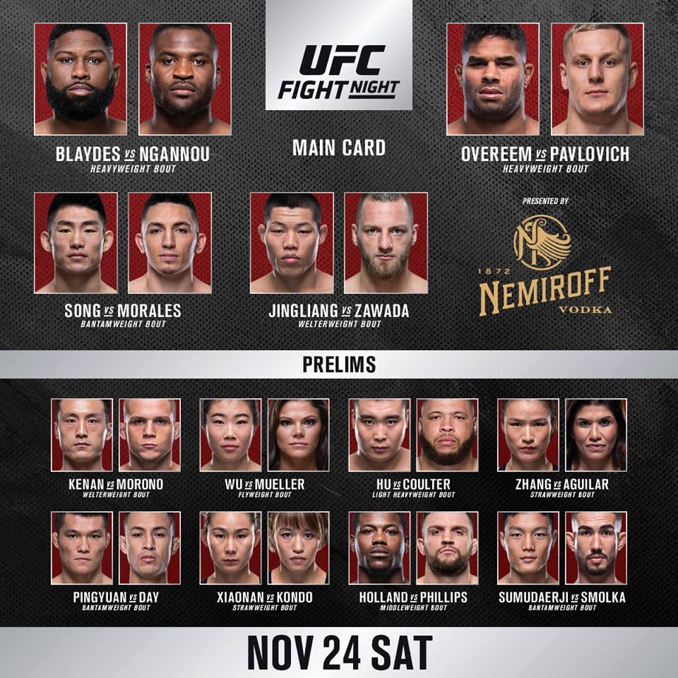 - Curtis “Razor” Blaydes (Nowhere, Oklahoma, USA) vs Francis “The Predator” Ngannou (Paris, France)