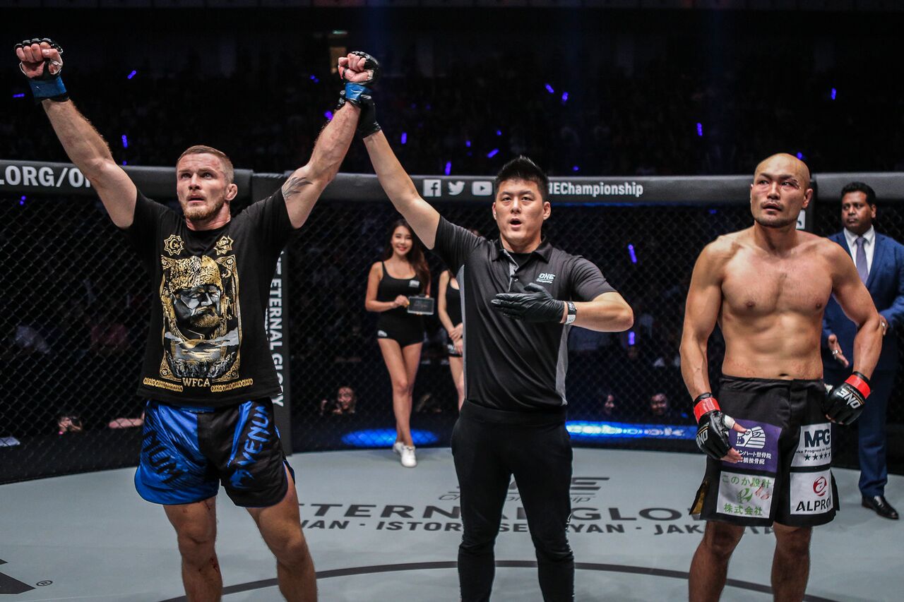 Bigdash ended the year on a triumphant note by toppling Niimura via first-round submission. After a solid exchange of offense for the majority of the first round, the Russian contender was able to trap the Japanese ONE Championship debutante in a bad position, catching the arm and the head in a reverse triangle.