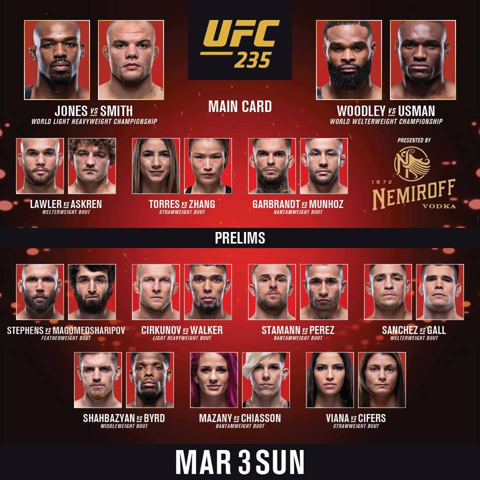 - Jon “Bones” Jones (USA) vs Anthony “Lionheart” Smith (USA)