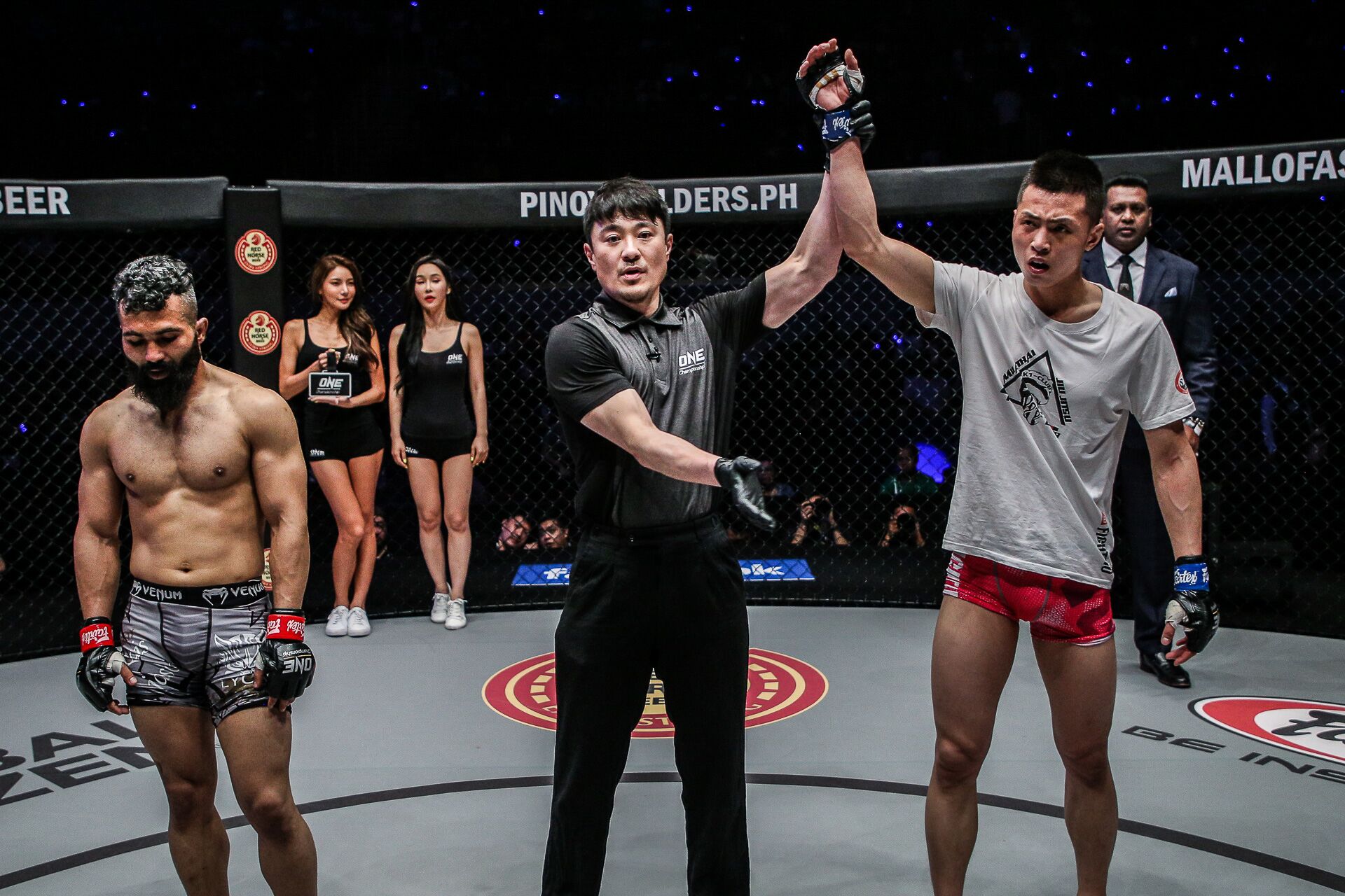 Featuring two kickboxing contests, two Muay Thai bouts and 11 mixed martial arts matches, “ONE: Roots of Honor” took place at the SM Mall of Asia Arena in Pasay City, Metro Manila, Philippines on April 12, 2019. In the fourth bout of the evening, Xie faced “Lycan” Ahmad Qais Jasoor, 29, of Kabul, Afghanistan in an MMA match in the bantamweight division with Yoshinori Umeki as the referee.