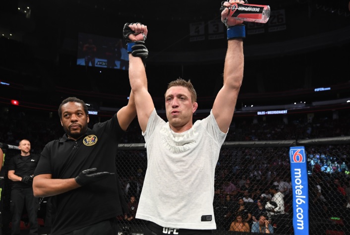 Dean put a stop to the middleweight contest after 1 minute and 49 seconds in the third round. Meerschaert submitted Giles via guillotine choke.