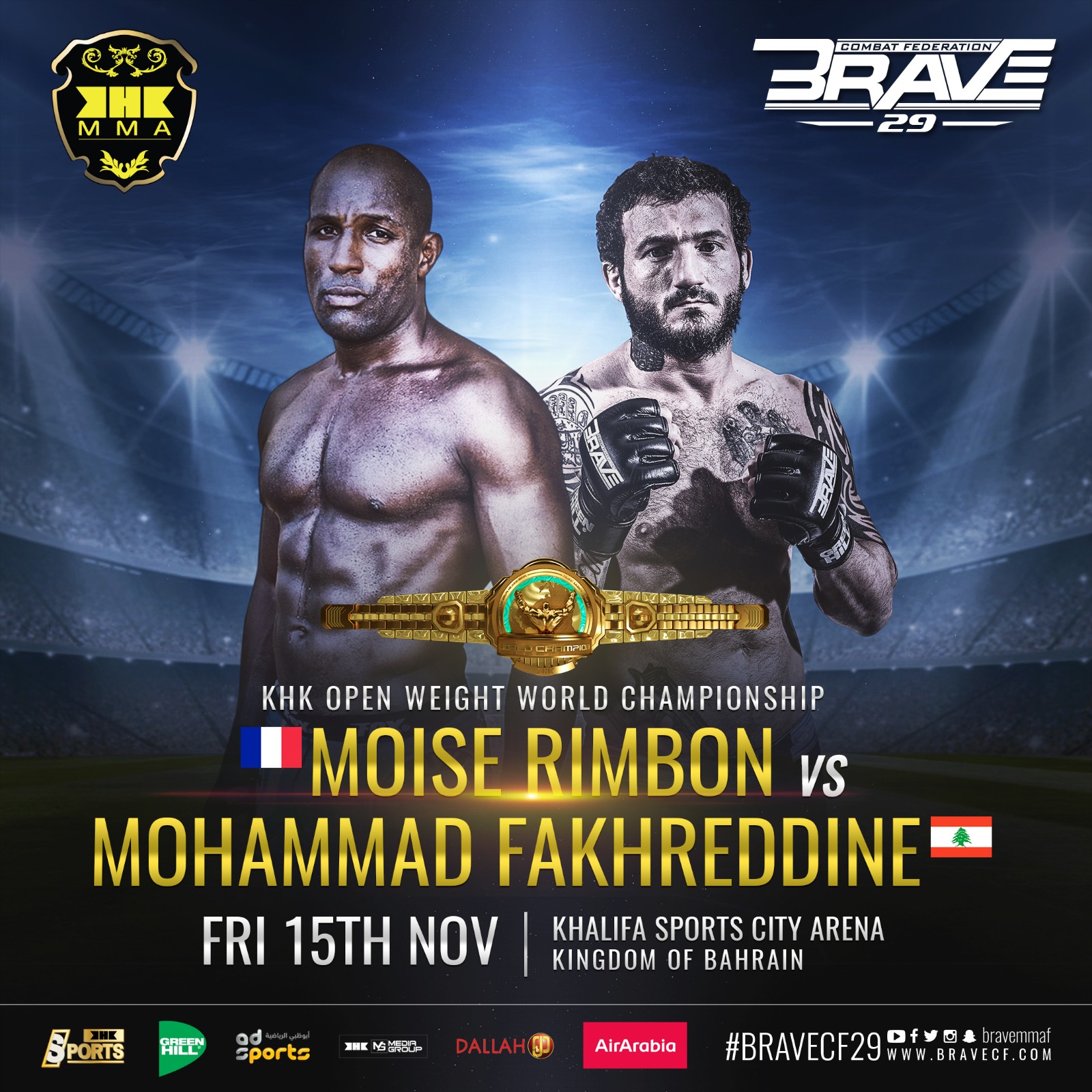 The KHK World Championship is a one-night, four-men, open weight tournament. It is part of “Brave 29,” which will take place at the Khalifa Sports City Arena in Isa Town, Bahrain on November 15, 2019.