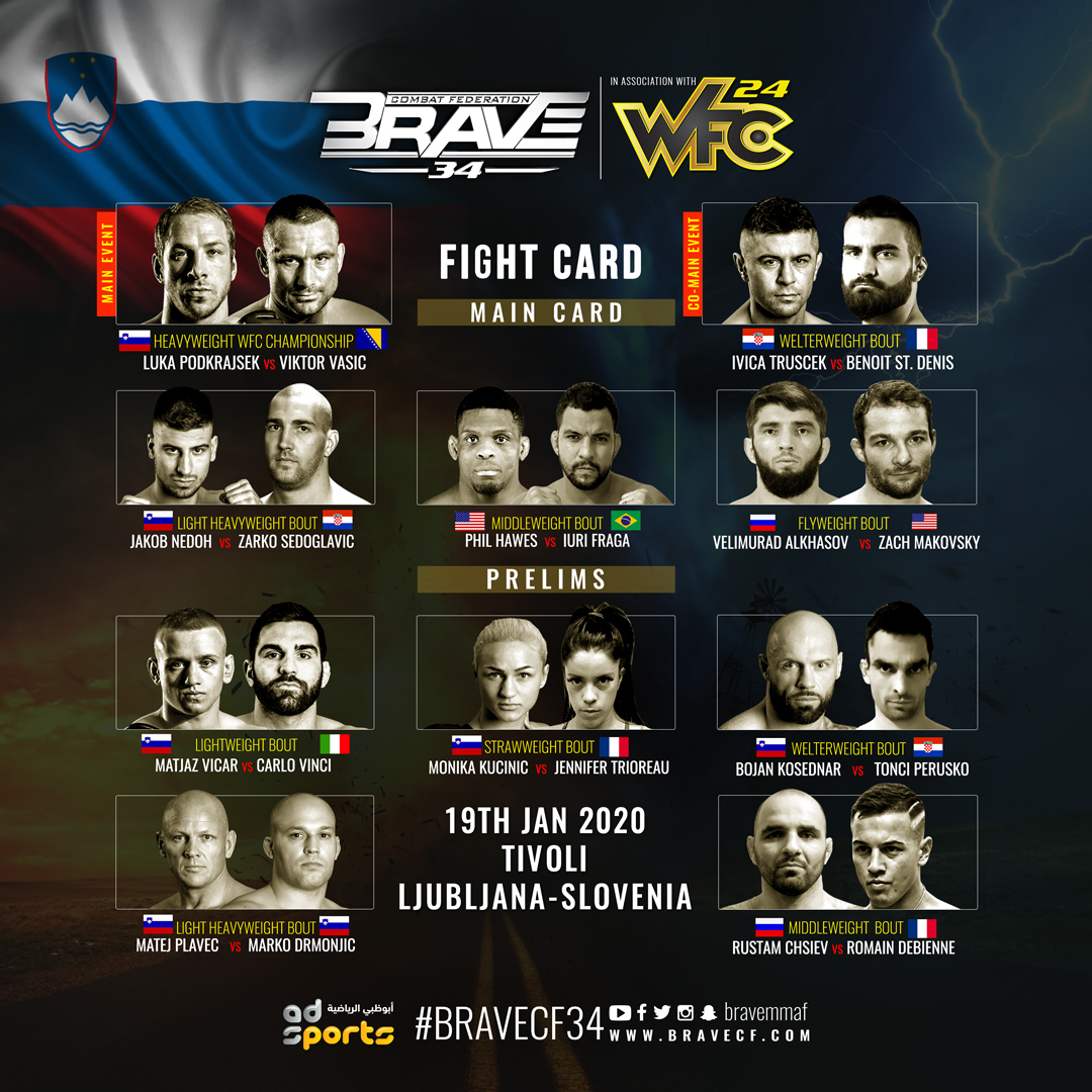 One thought on “‘BRAVE CF 34,’ ‘WFC 24’ fight card, results: Luka Podkrajsek vs Viktor Vasic, Ivica Truscek vs Benoit St. Denis in Ljubljana, Slovenia”