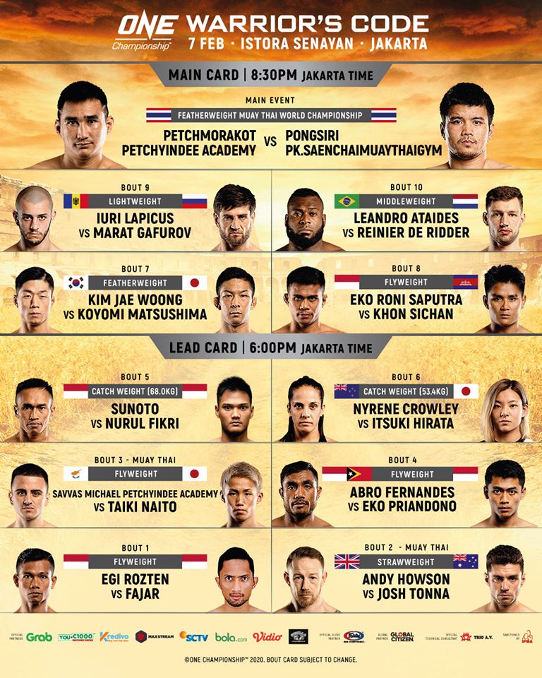 With 11 bouts, ONE Championship will hold “ONE: Warrior’s Code” at the Istora Senayan in Jakarta, Indonesia on February 7, 2020. Here are the final weight and hydration results: