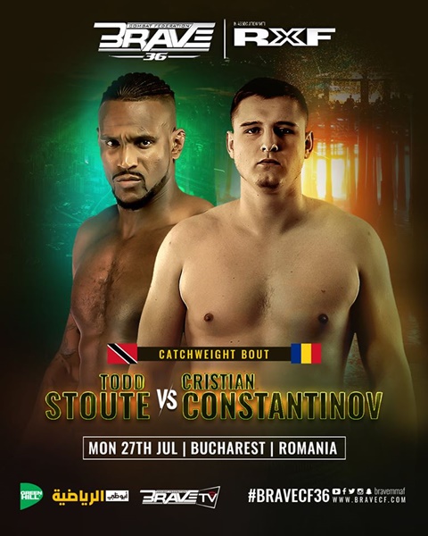 Featuring five MMA matches, “BRAVE CF 36” took place at Berăria H in Bucharest, Romania on July 27, 2020. In the main event of the evening, Stoute fought Cristi Constantinov, 23, of Bucharest at a catch weight of 104kg.