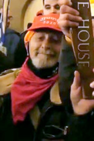 - He and Hernandez went to the U.S. Capitol building in Washington, D.C., USA on January 6, 2021. That day, Donald Trump supporters breached the building while a joint session of Congress was certifying the vote of the Electoral College and affirming Joe Biden‘s victory in the 2020 presidential election. Wearing a hat with the words “Trump 2020,” he and Hernandez were photographed holding a piece of the nameplate that had been taken from the doorway of Nancy Pelosi’s office during the riot. (a)